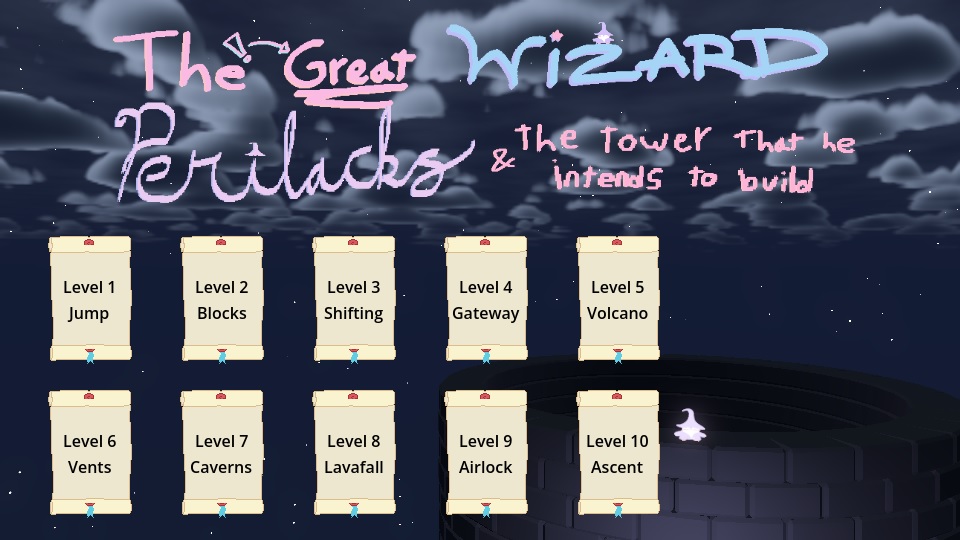 You are the Great Wizard Perilacks (pronounced PAIR-uh-LAX) and you wish to build yourself a Tower. Use your magic spells to move, place blocks, and interact through strange and esoteric perspectives. In the end, only the grandest of towers will be enough!